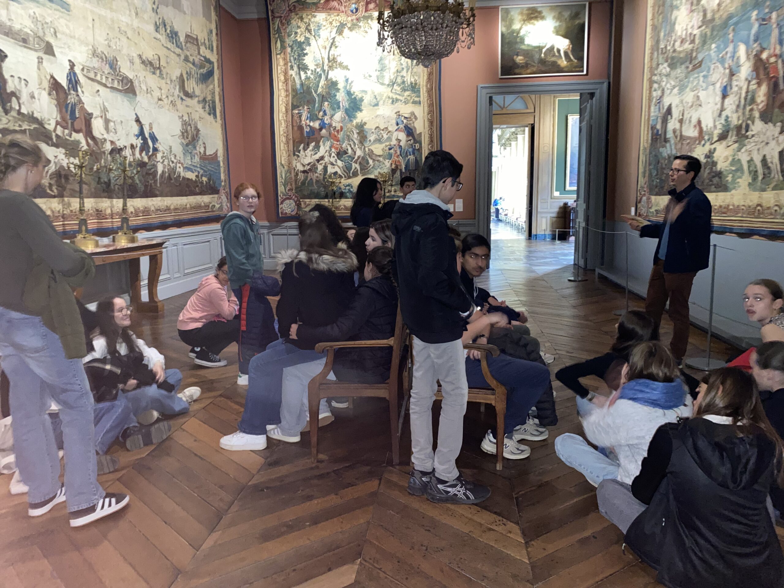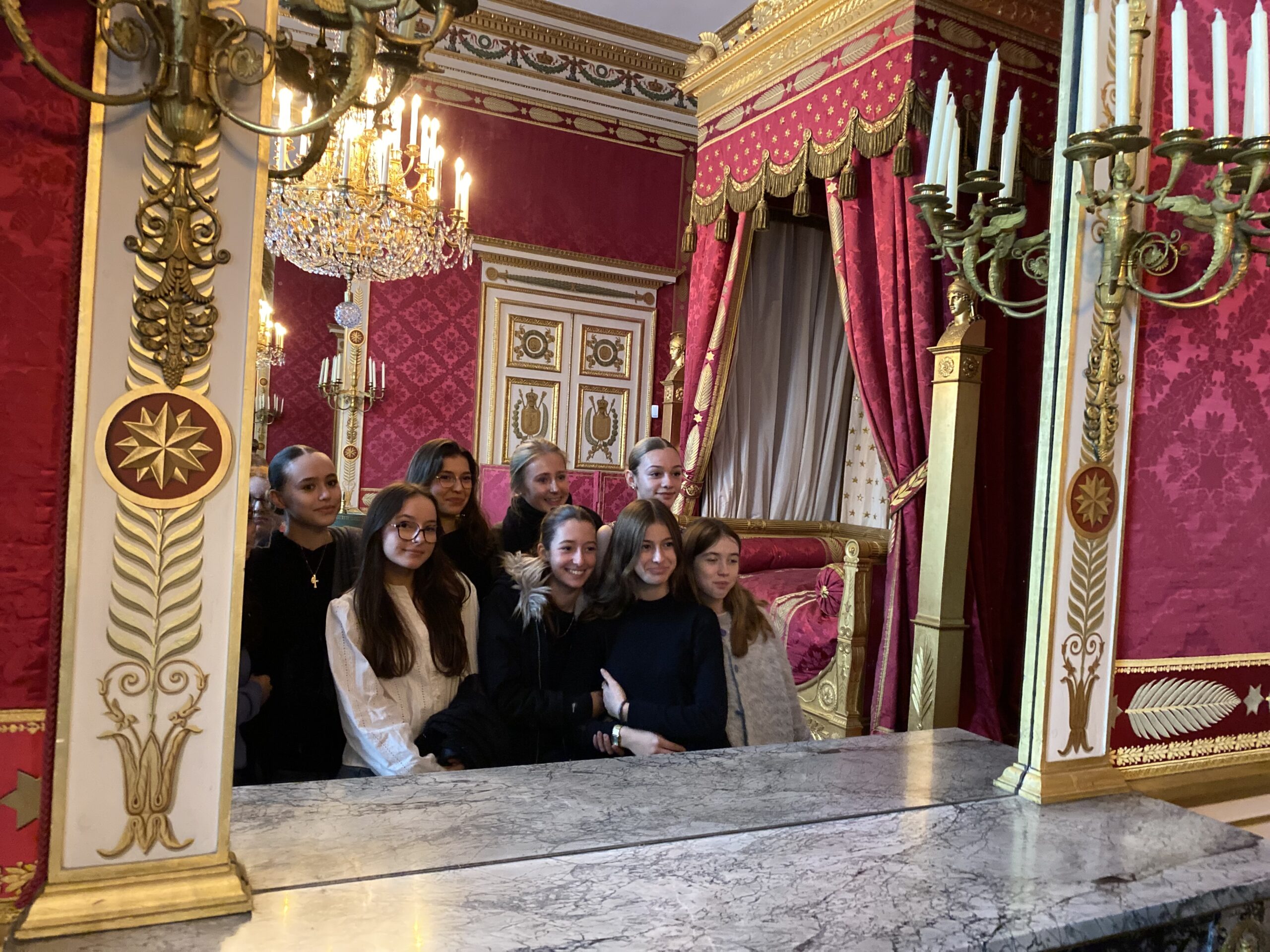 Les élèves ont eu le privilège de bénéficier d’une visite guidée de l’exposition, leur permettant d’apprécier les œuvres et d’approfondir leurs connaissances grâce aux explications expertes des guides du château. Ils ont également visité les appartements impériaux, qui offrent un aperçu fascinant de la vie et des goûts des souverains français.
