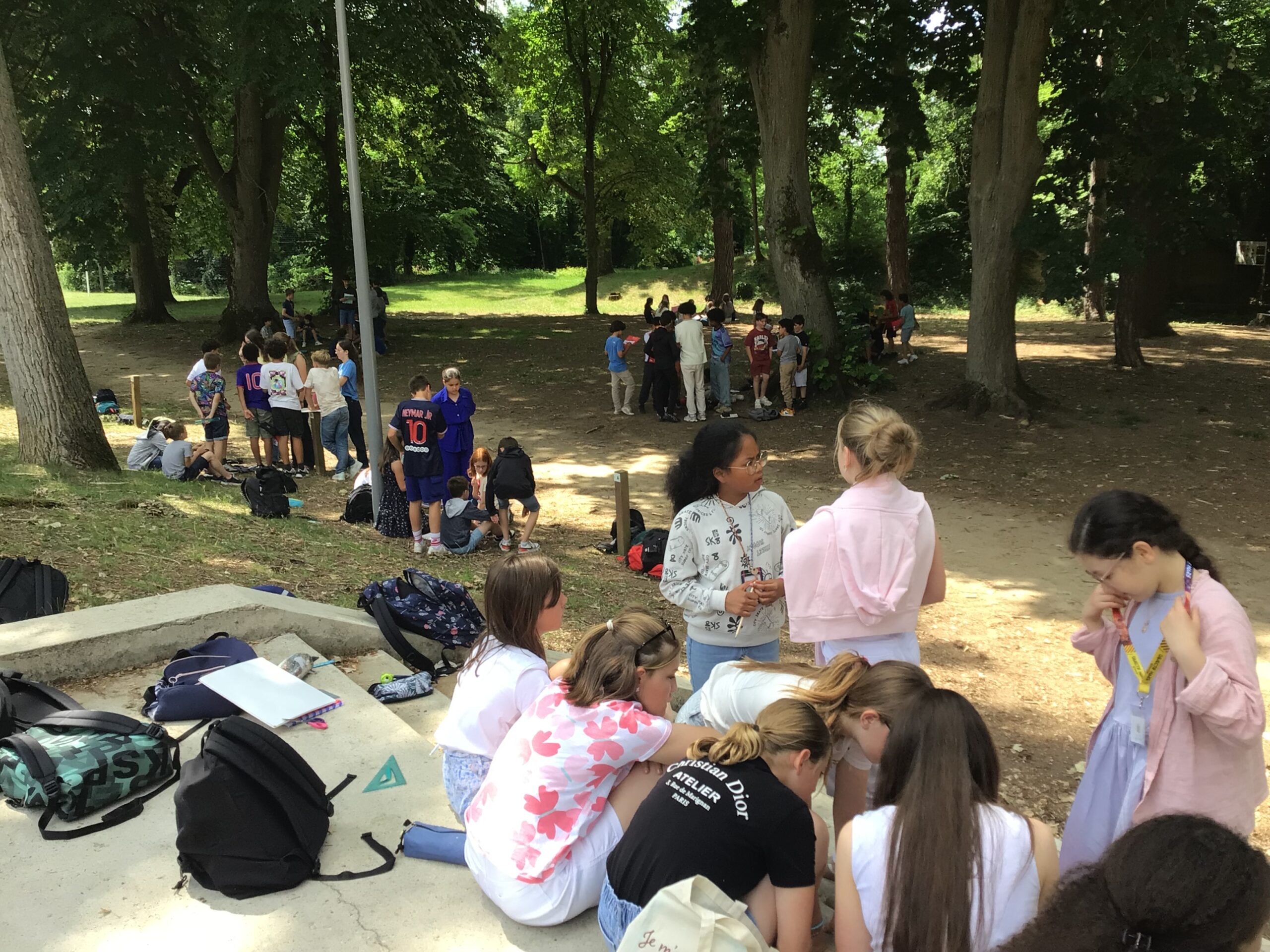 A l’ombre du parc du collège, les élèves devaient résoudre des énigmes mathématiques diverses : codes, casse-têtes géométriques et autres problèmes. Ce défi était suivi d’un goûter.