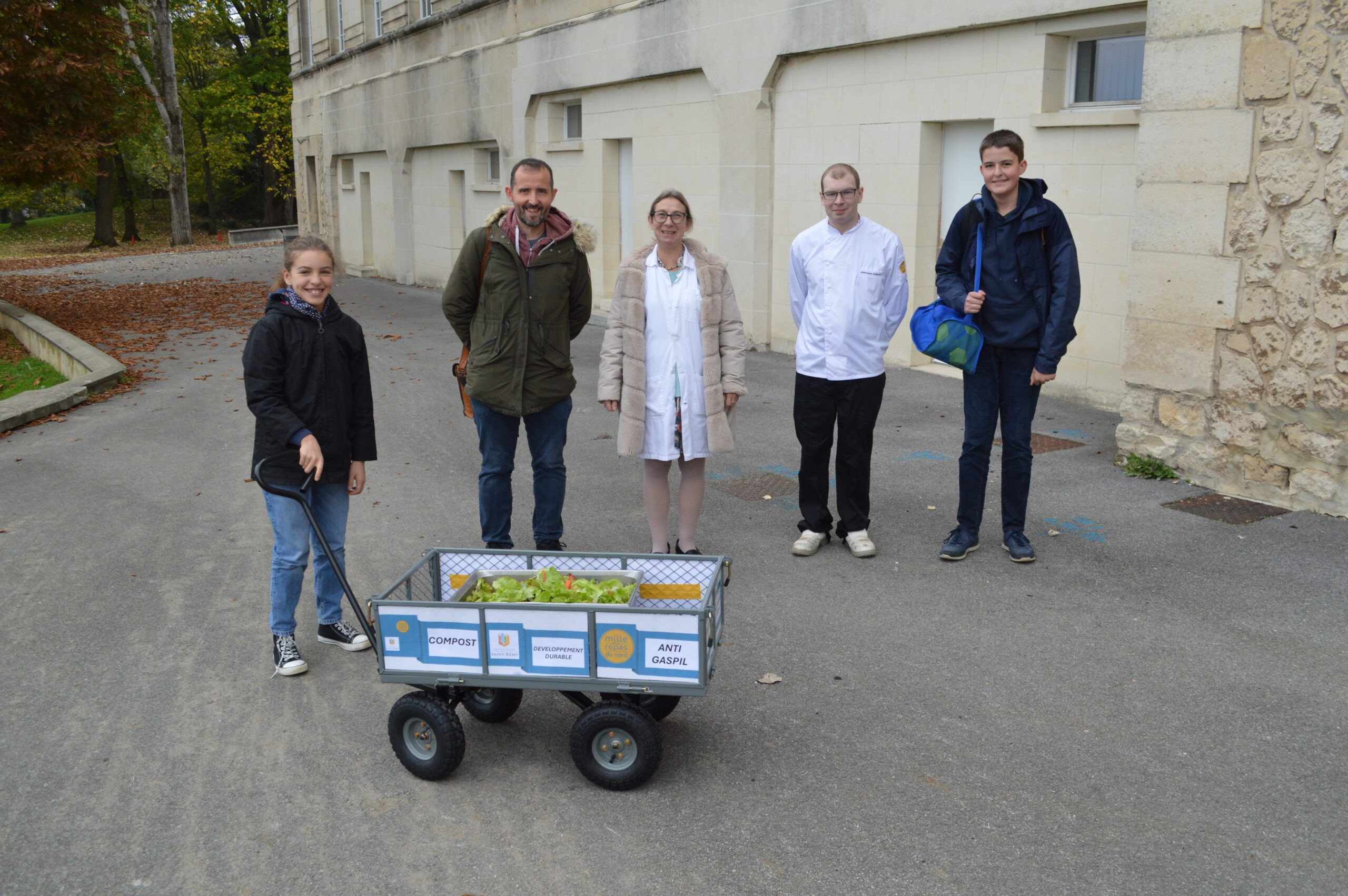 Ce projet ambitieux repose sur une collaboration étroite entre les élèves, les professeurs et le personnel technique. M. Joly, particulièrement engagé dans cette démarche, veille au bon fonctionnement du composteur et encadre les élèves tout au long du processus. Mme Gentric, professeure de Sciences Physiques et Référente EDD, s’assure du respect du planning de collecte. Le projet bénéficie également du soutien actif de Mille et un repas du Nord et de M. Noizier, Responsable du service technique, dont l’équipe contribuera au compost avec les tontes de pelouse et le ramassage des feuilles mortes, enrichissant ainsi le compost en matière verte. Merci également à M. Klimeck, Conseiller Principal d’Education, qui a eu l’idée du chariot de compostage et de son embellissement.
